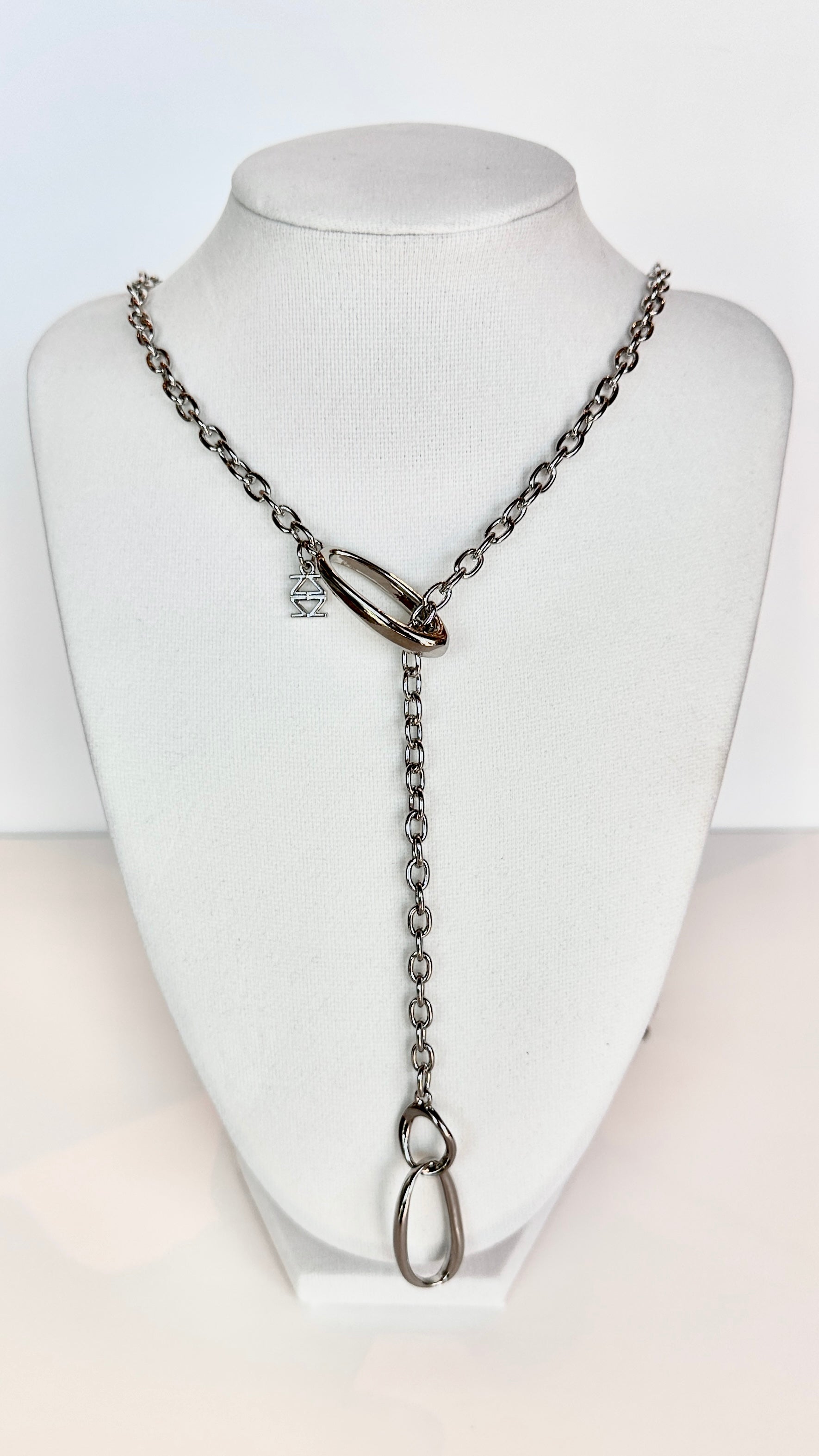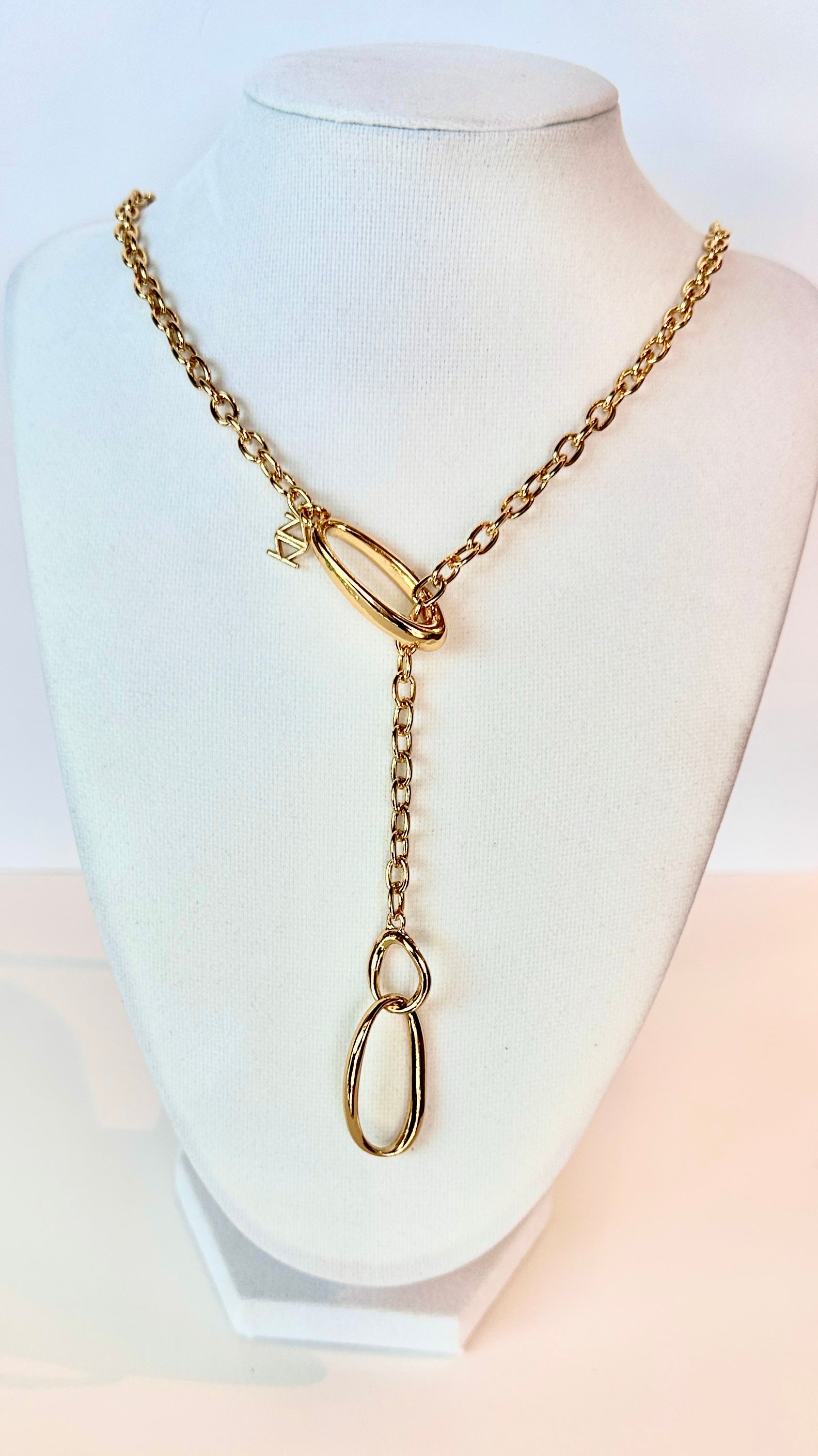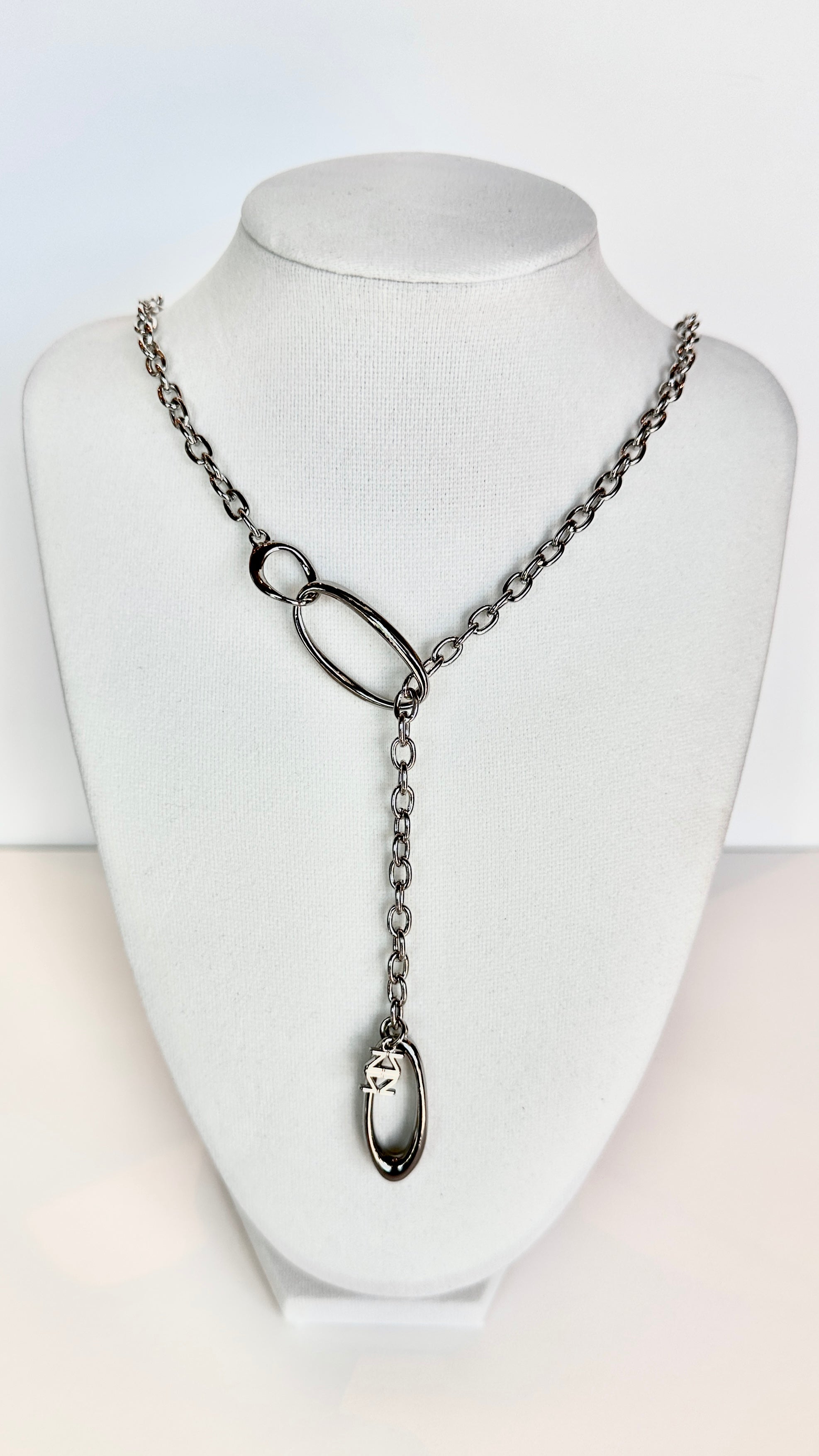 A versatile piece that adapts to your style. Featuring sleek oval links, this necklace can be worn long, doubled or adjusted by linking at different points. Available in both gold and modern rhodium finishes.