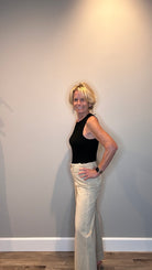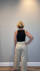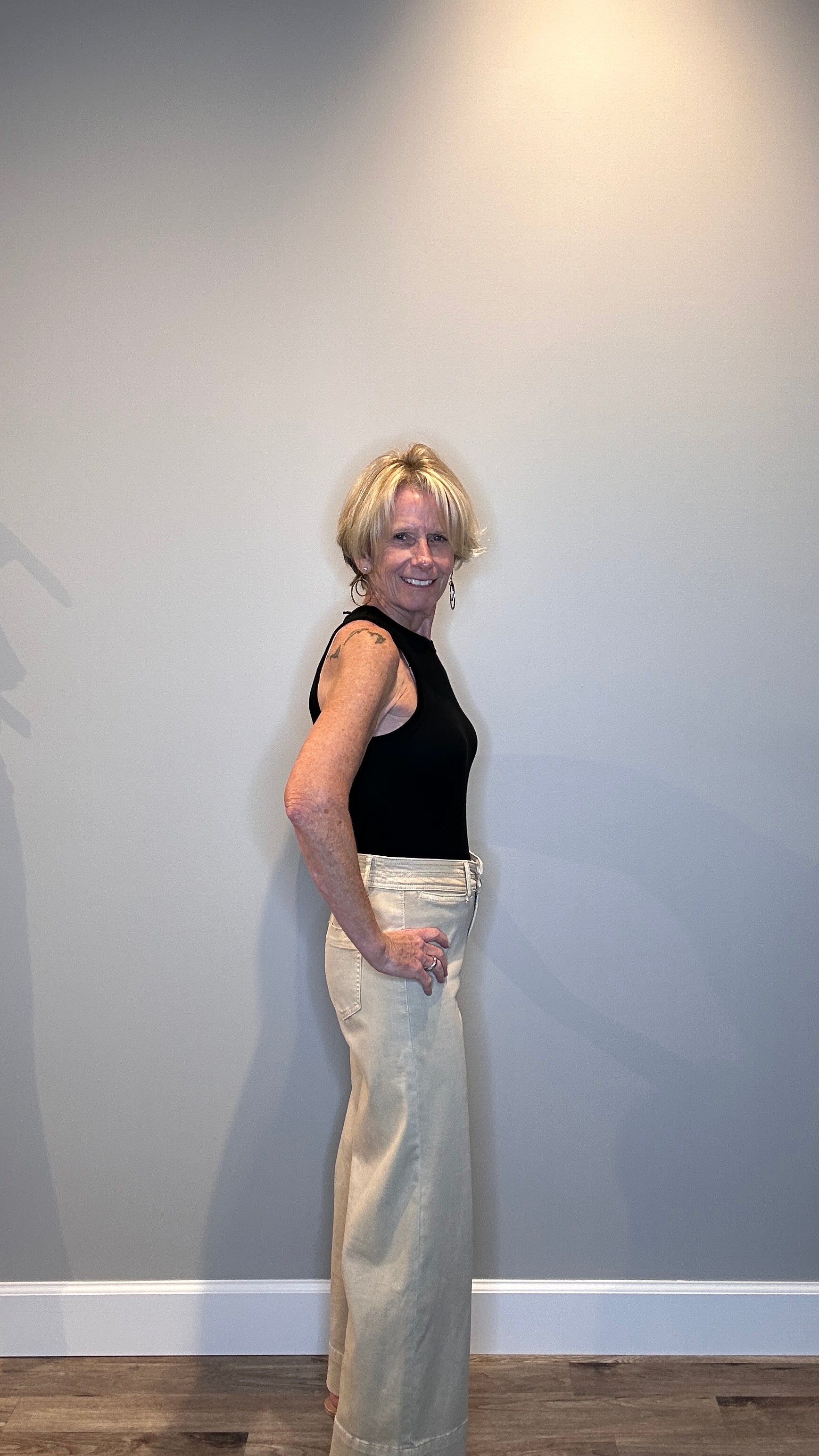 Step into your new favorite silhouette with these high-rise palazzo ankle pants, featuring a clean double button waistband and flat front seam for a sleek tailored look. The wide, exaggerated hem adds fluid movement and fashion-forward appeal while discreet pockets tucked just beneath the waistband provides subtle functionality.