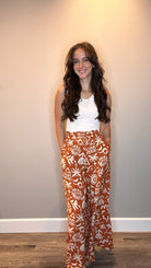 Make a bold statement in this wide leg skirt pant featuring a fun abstract print and flattering skirt-like silhouette. Designed with a comfortable pull-on waistband and front angle pockets. Perfect for days when you want to stand out while staying effortlessly comfortable.