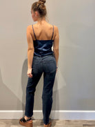 The Geo Glider offers a modern alternative to the skinny jean with a comfortable mid-rise and straight leg. Featuring a faux fly, functioning pockets and a clean silhouette with no zipper, it's perfect for those who want a sleek look with the squeeze.
