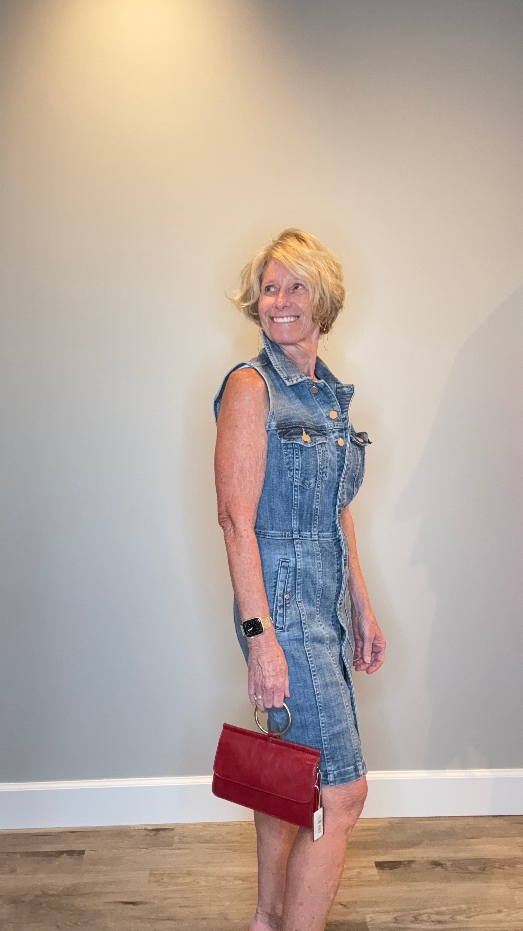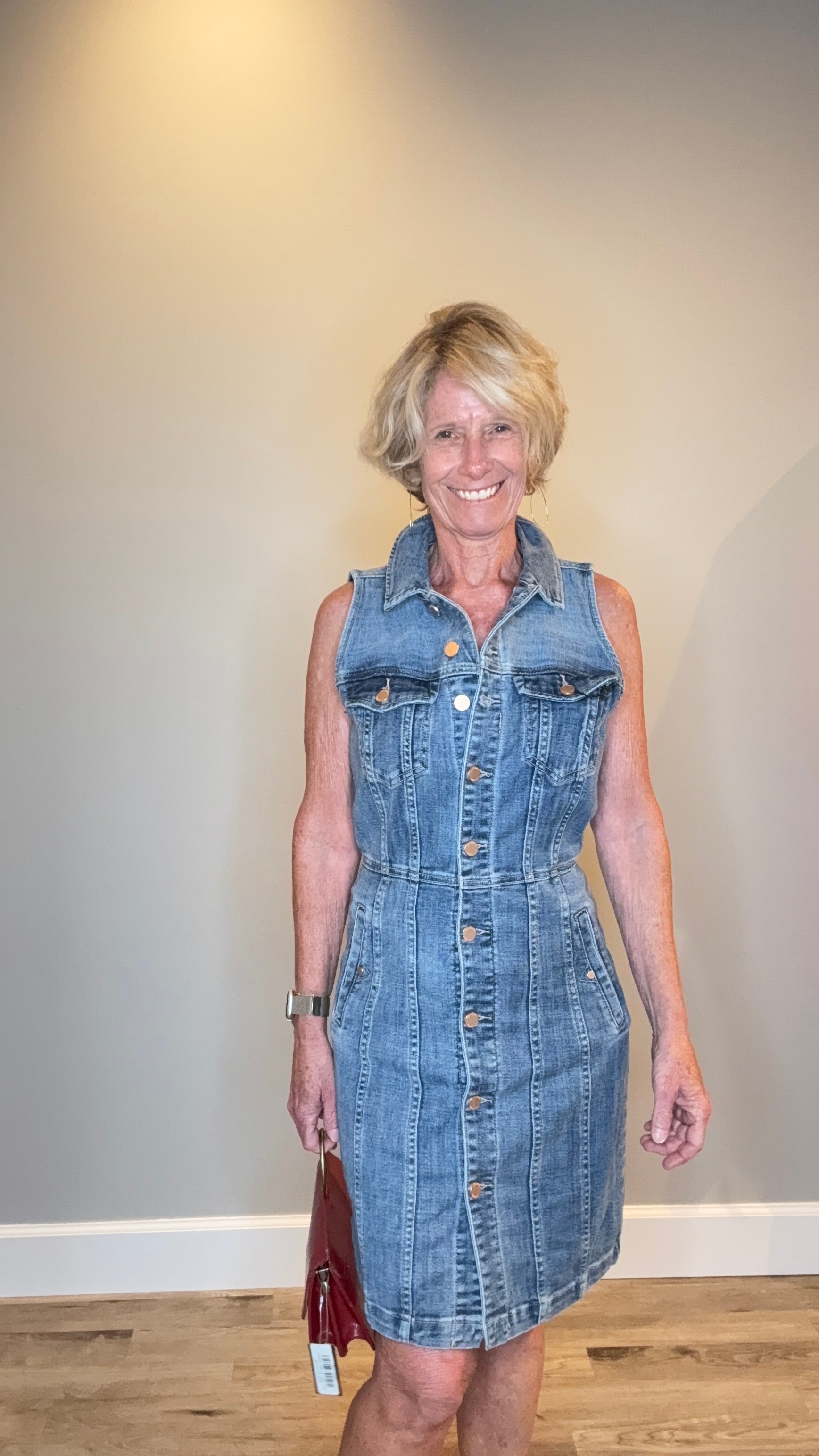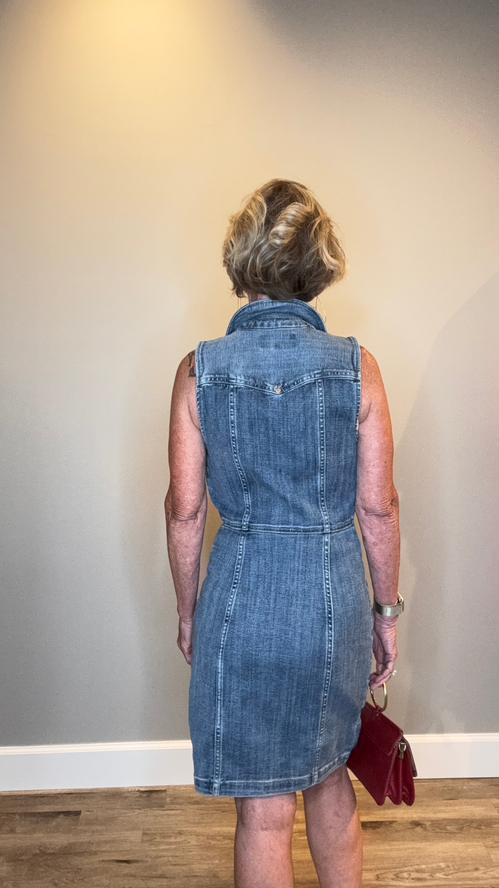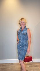 Sleeveless Trucker Denim Dress with Flattering Seams & Copper Hardware