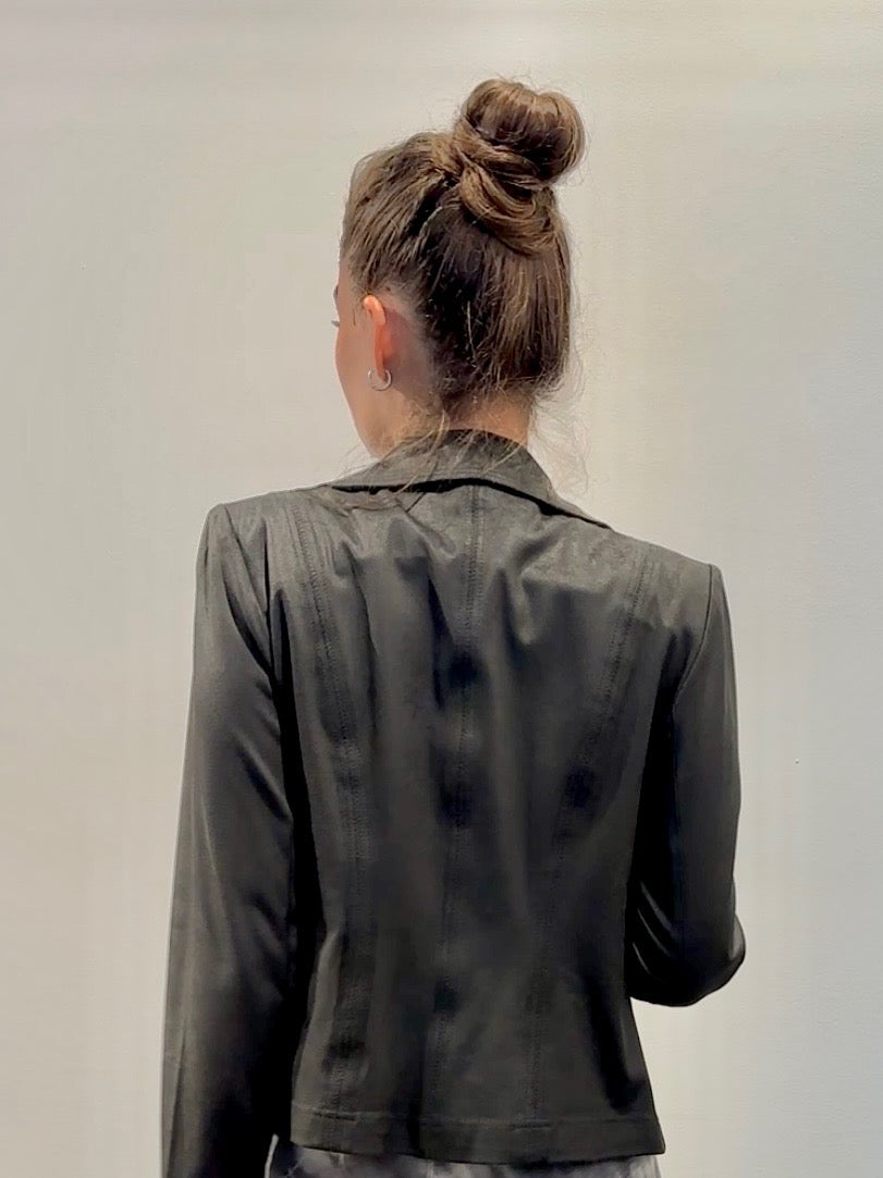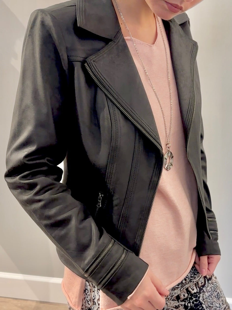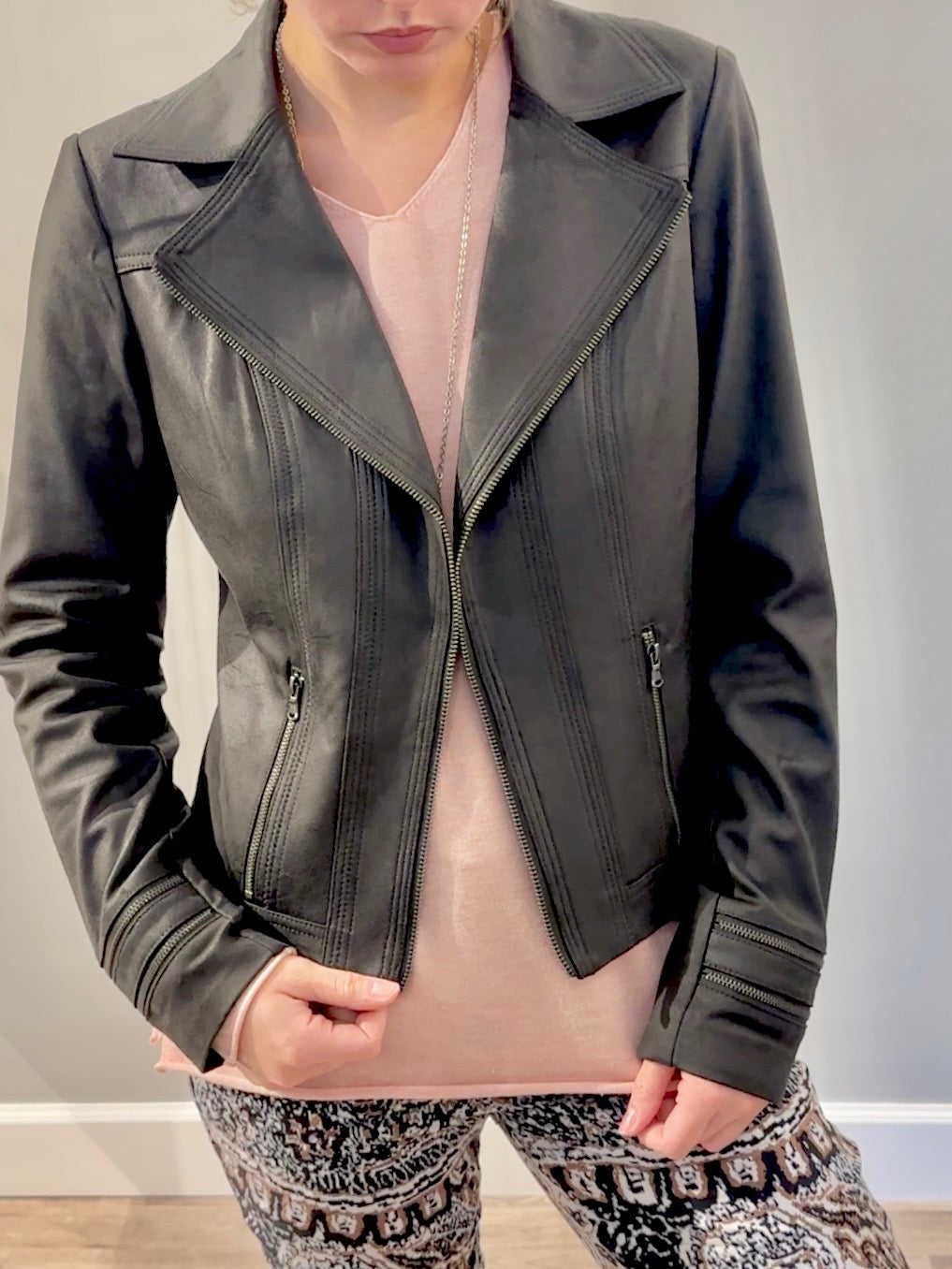 Butter Soft Faux Leather Jacket with Gunmetal Zipper Details and Hook & Eye Closure