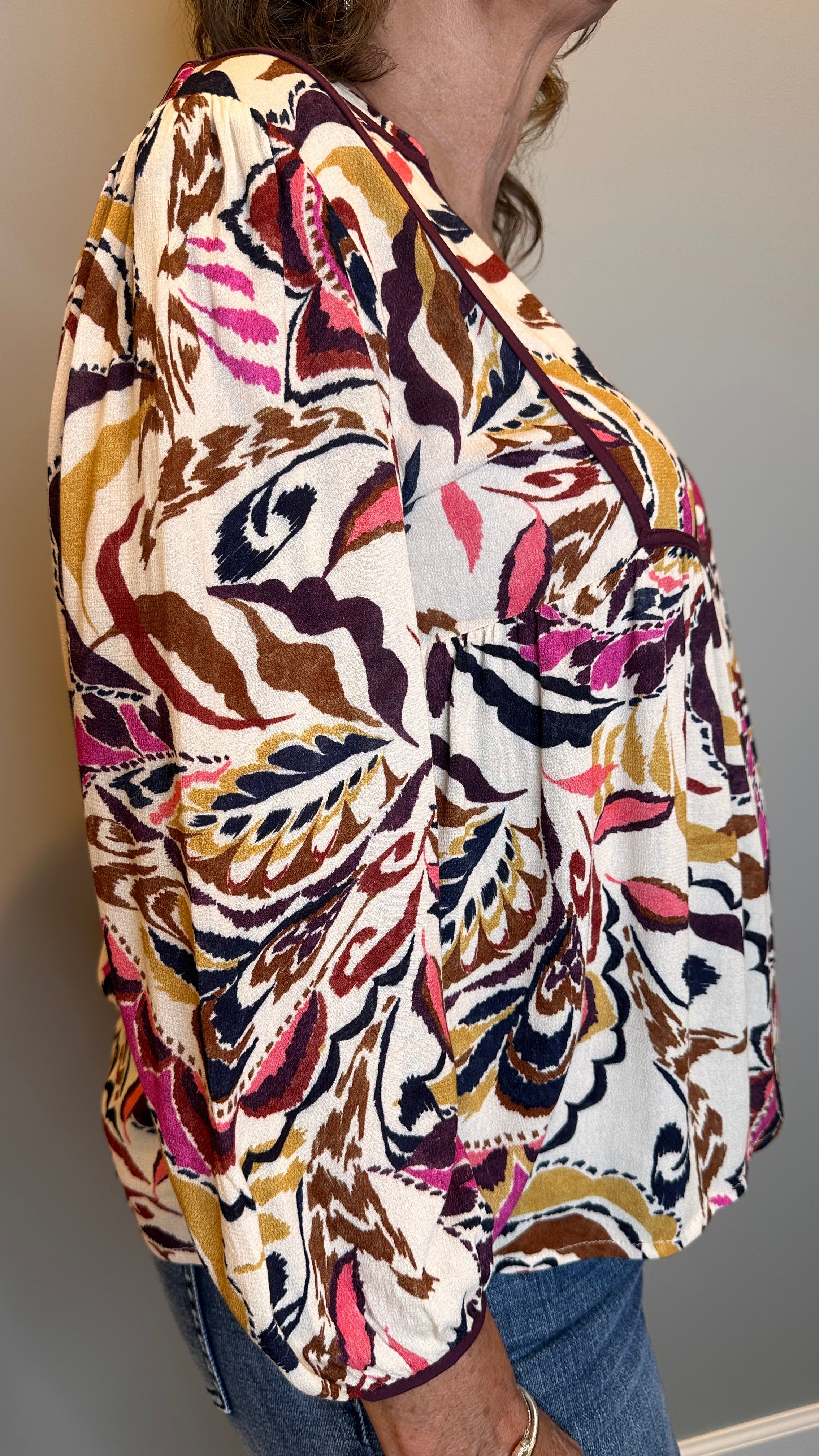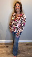 This 3/4 sleeve printed top is crafted with eye-catching details. It brings a fun touch to any ensemble. This top adds a hint of flair to your closet while bringing bringing quality and charm as well.