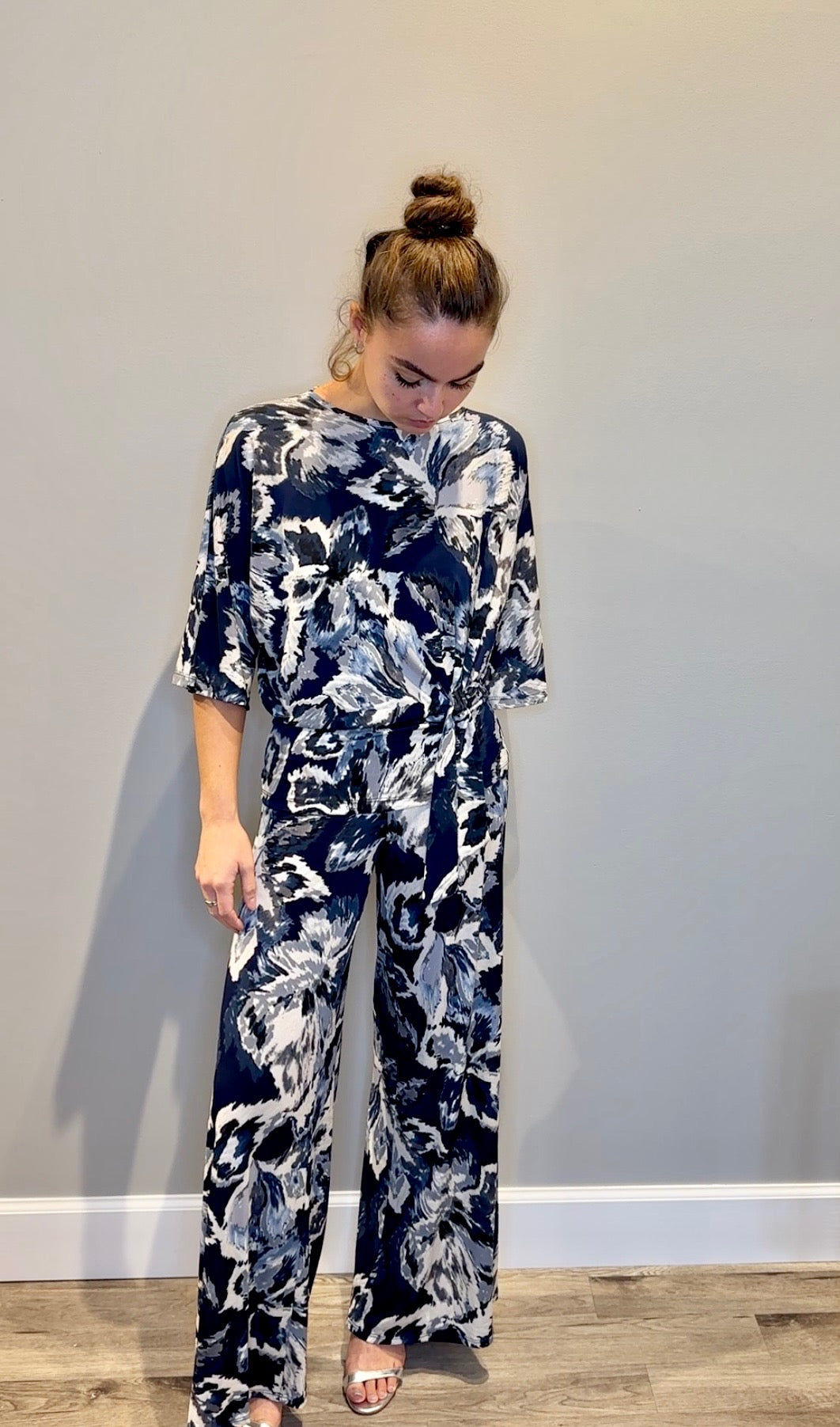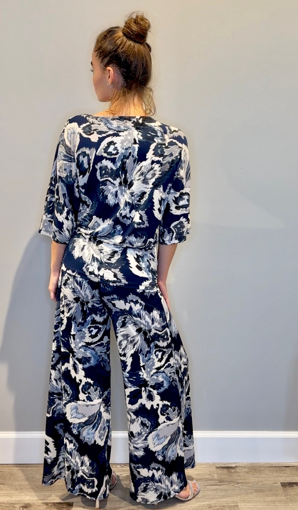 Abstract Floral Palazzo Pant with Silver Foil in a Soft Travel Friendly Knit