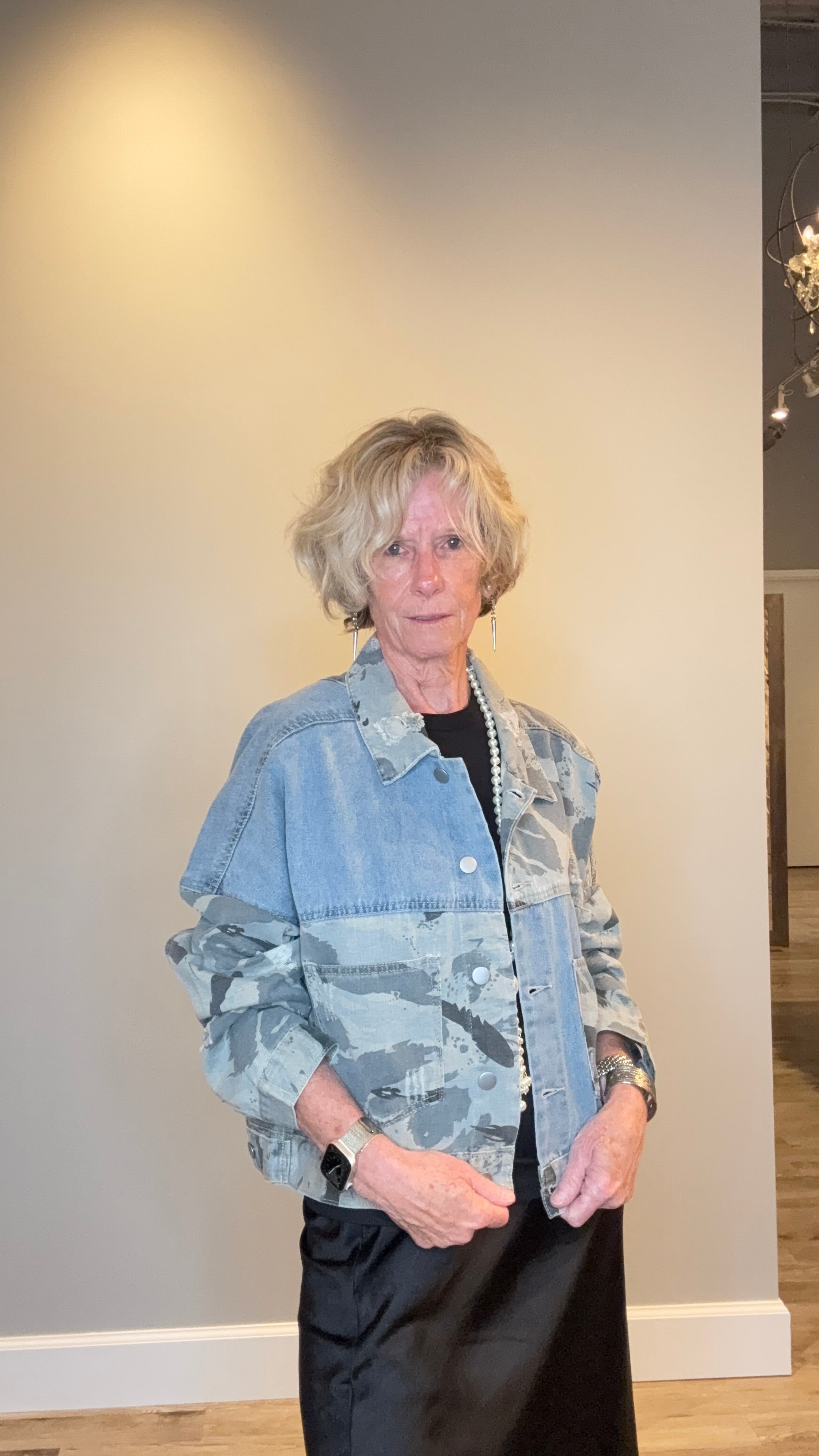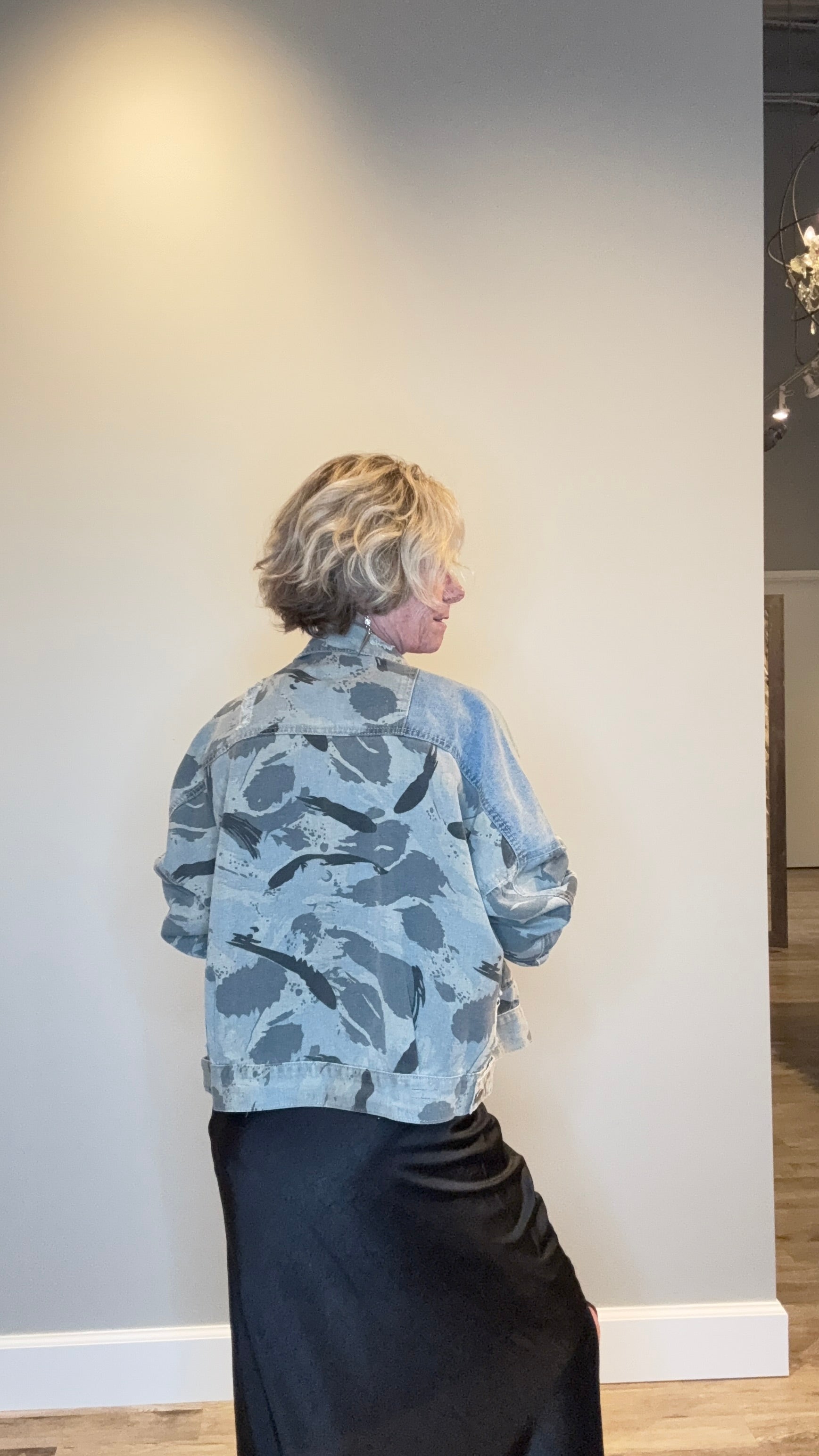 Deconstructed Lightweight Vintage Denim Jacket with Leopard Mix and Splash Effect Camo