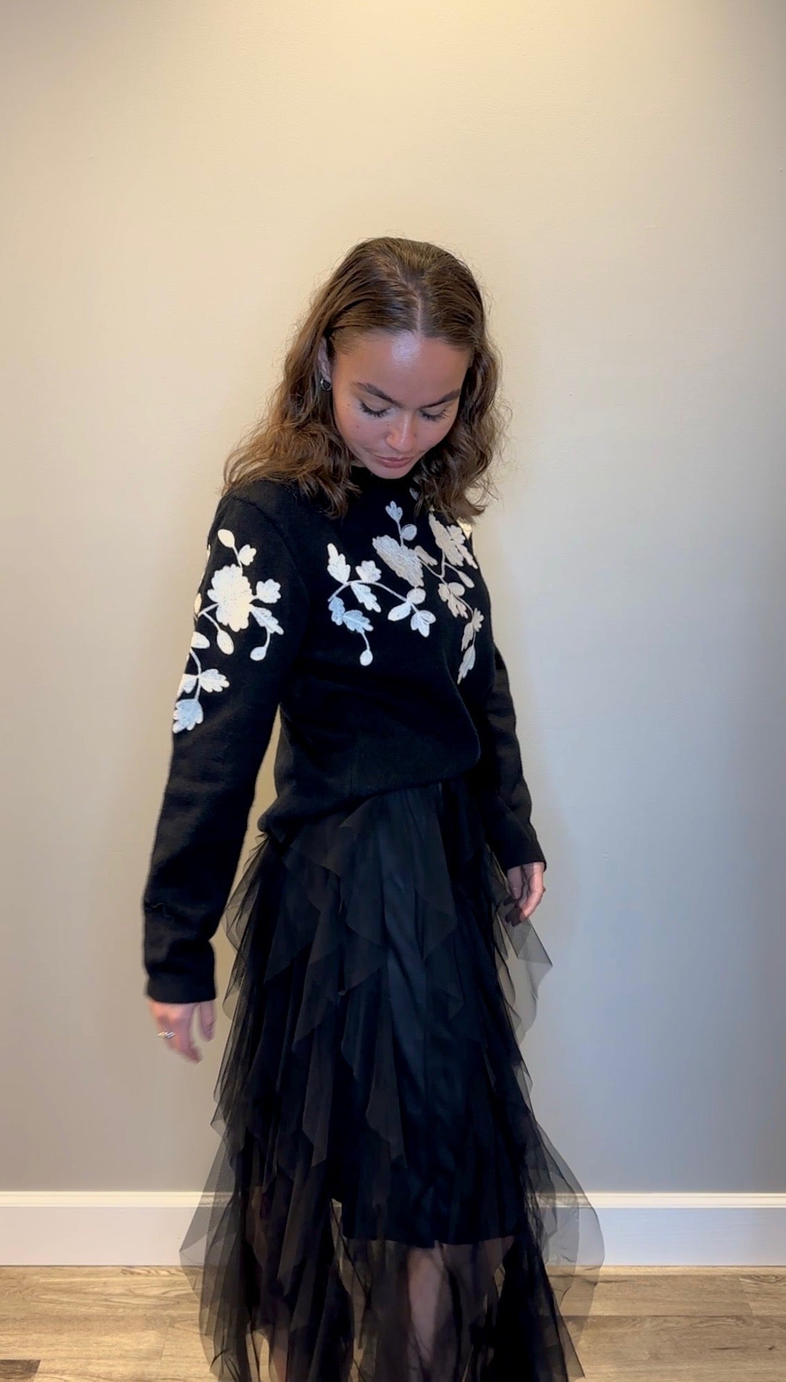 • Midi length with layered ruffle tulle for volume and texture