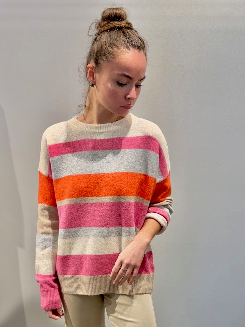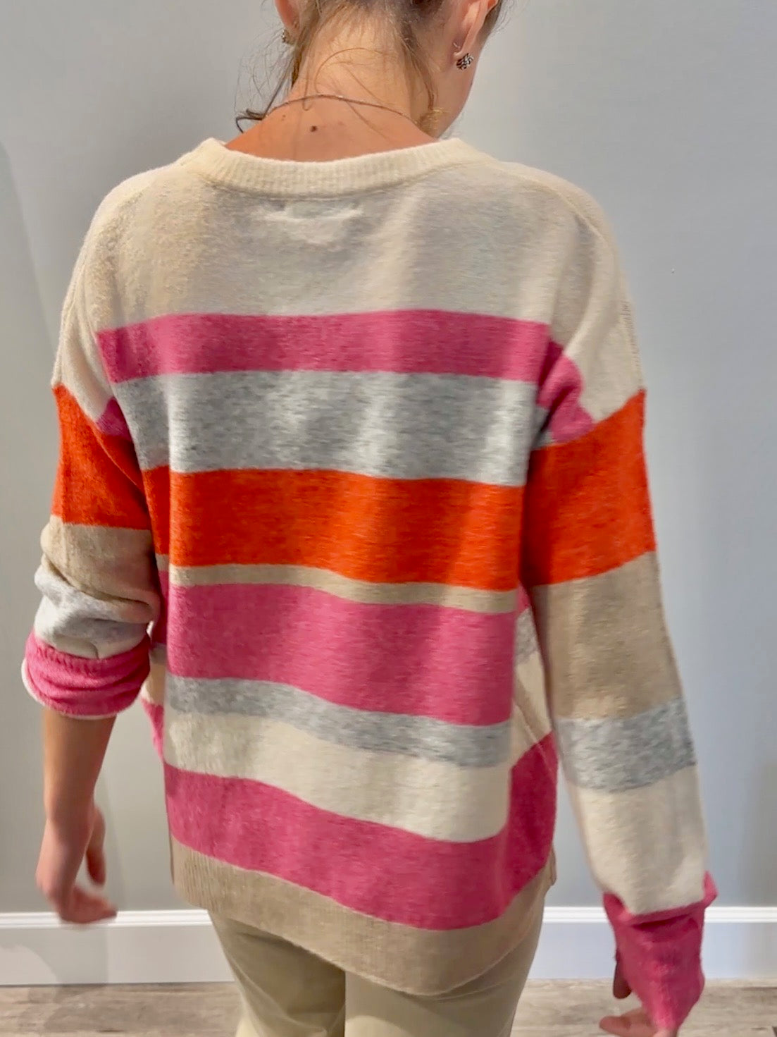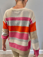 Multi-Color blocked pullover with a classic crew neckline and long sleeves. Crafted in a super soft knit, this cozy sweater brings a modern pop of color to your everyday wardrobe.