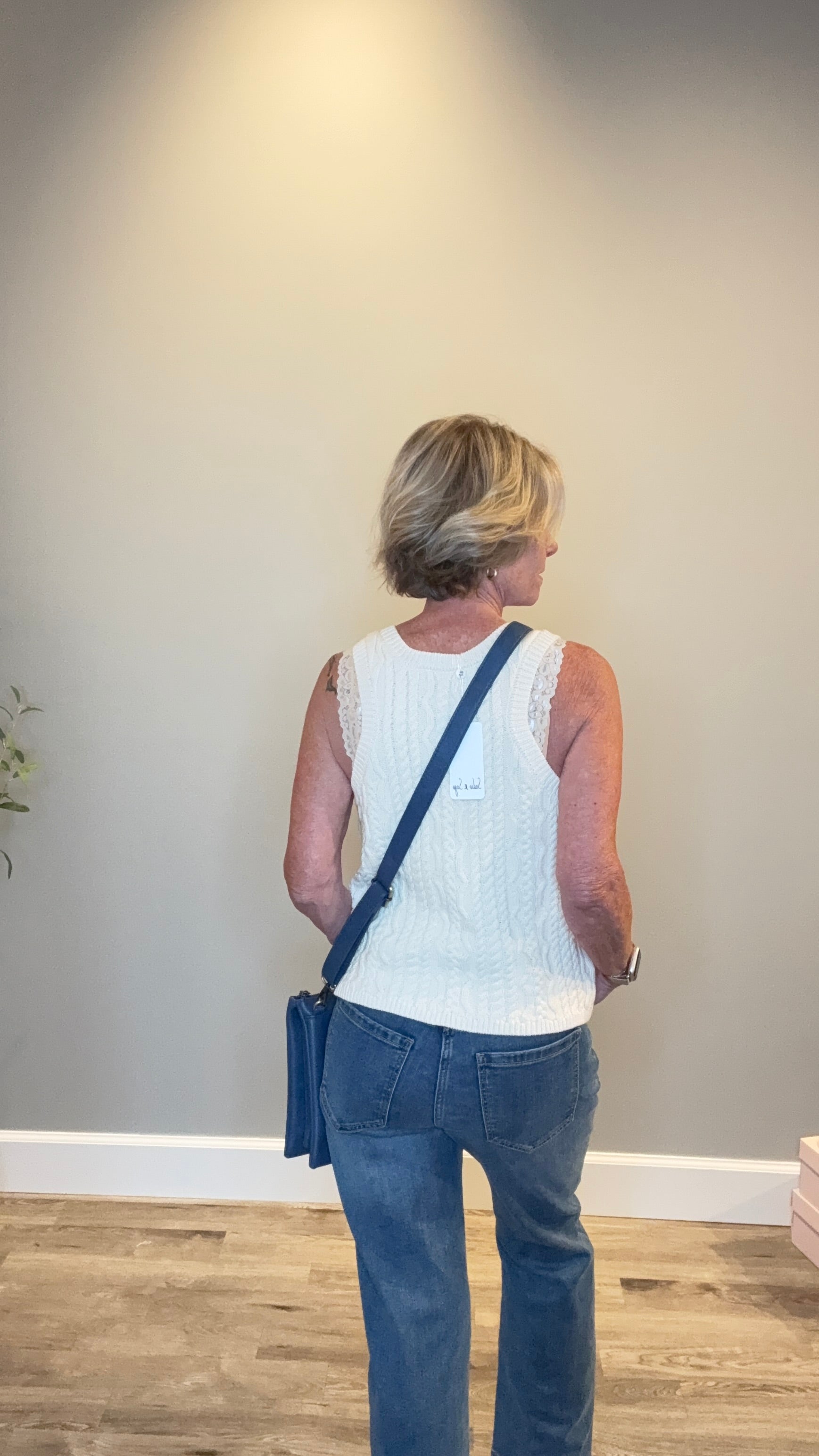 Ivory Cable Knit Racerback Tank in Breathable Cotton