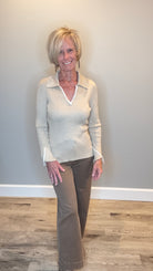 Soft Spun Rayon Johnny Collar Top with Contrast Blanket Stitch Detail