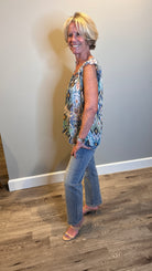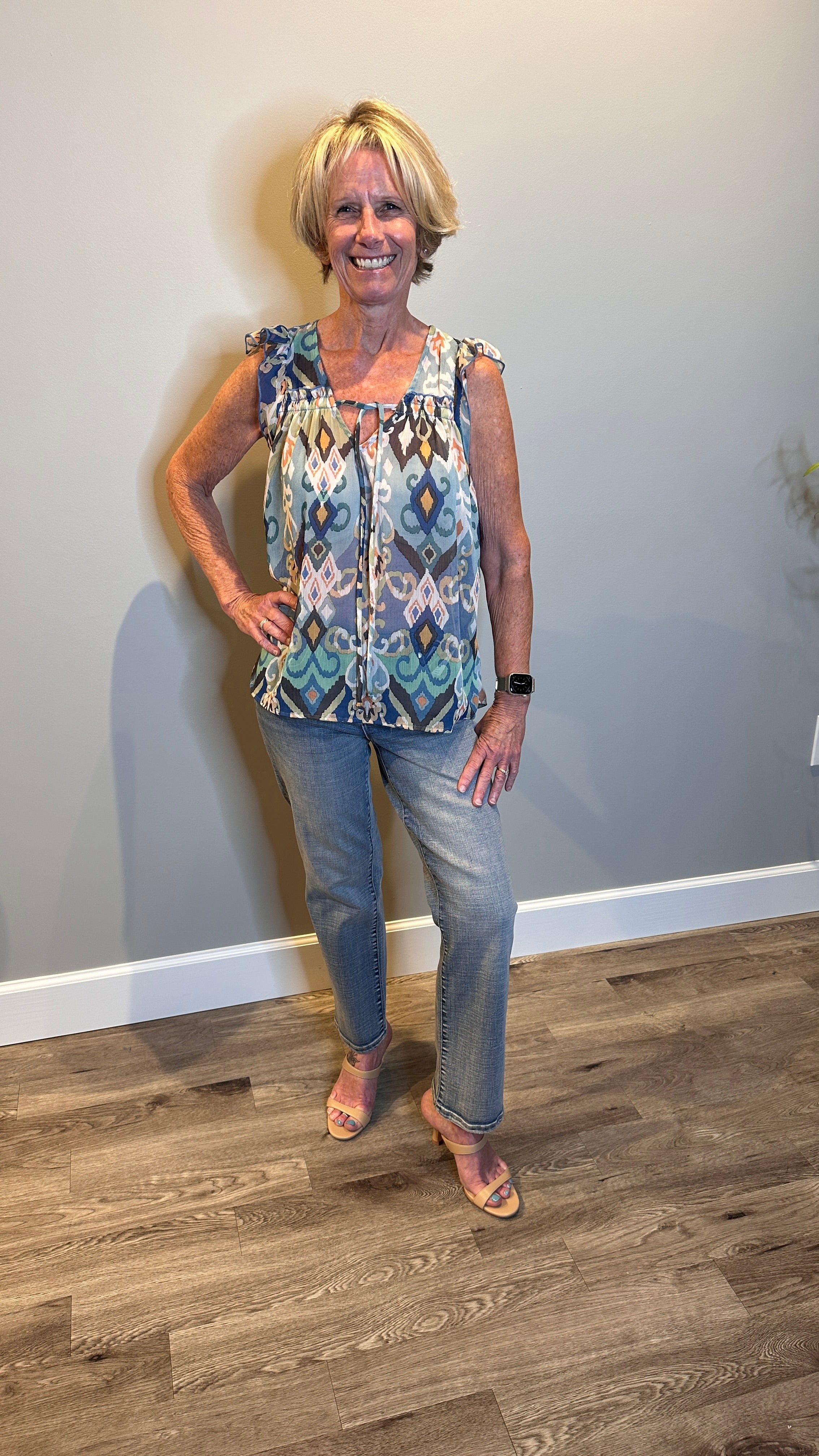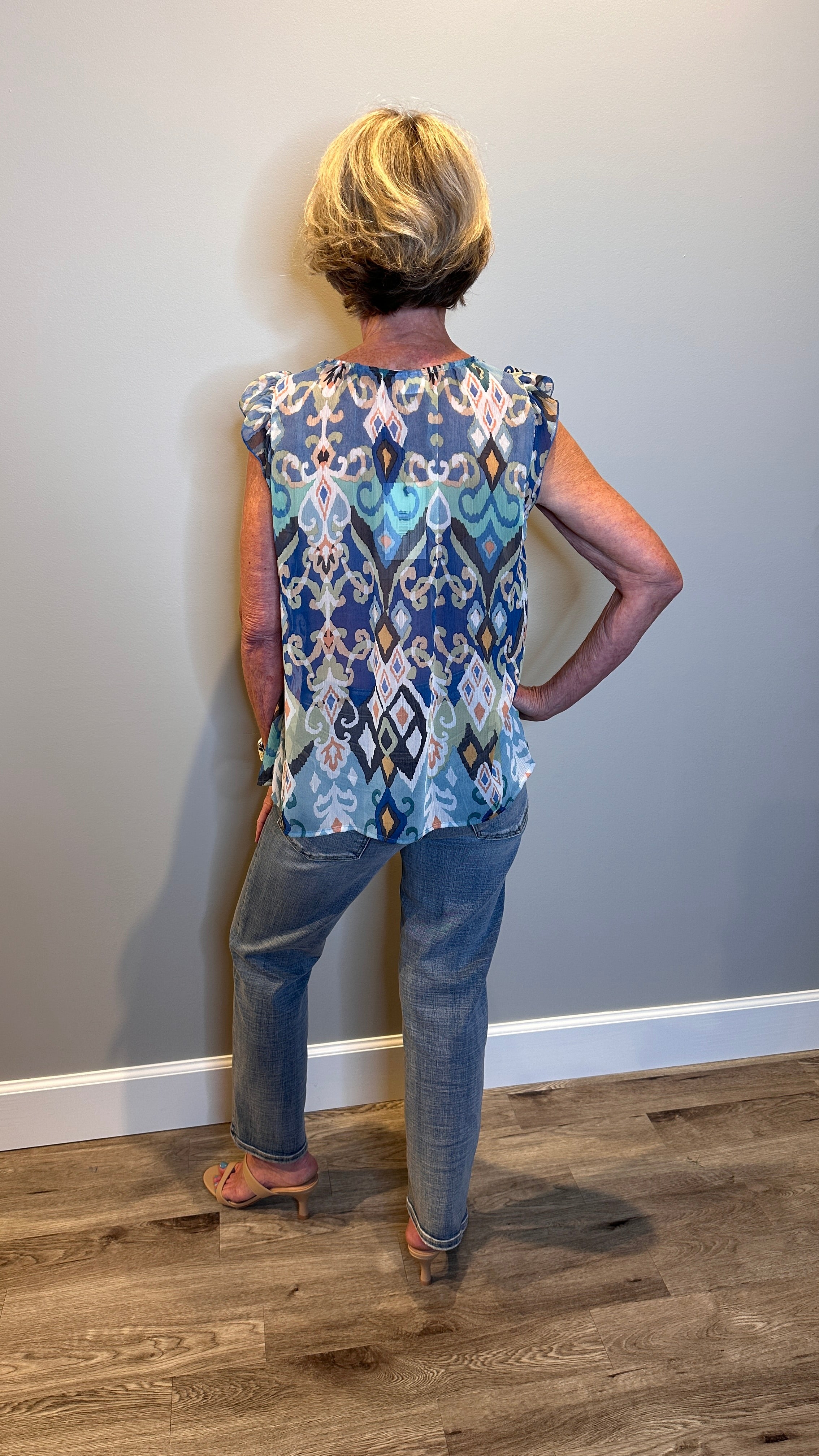 Susan Flutter Cap Sleeve Ikat Printed Top