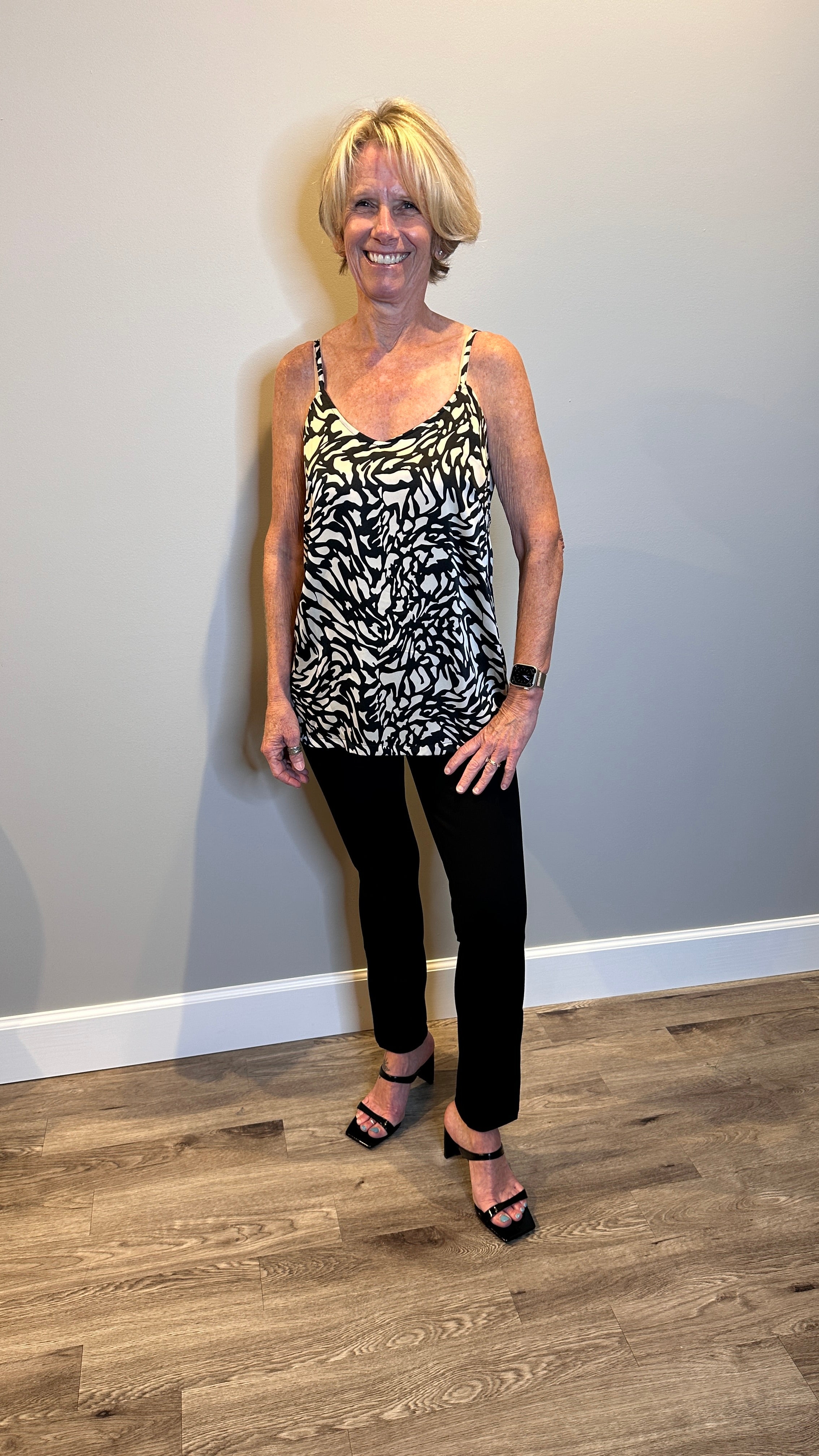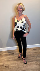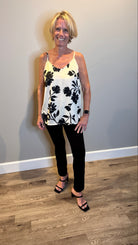 Our V-neck camisole is a versatile must-have that is offered in two striking prints - one with a cream background and black floral and the other in a bold abstract animal print. Designed with adjustable spaghetti straps, a subtle high-low hem and an elastic back for a comfortable and flattering fit.
