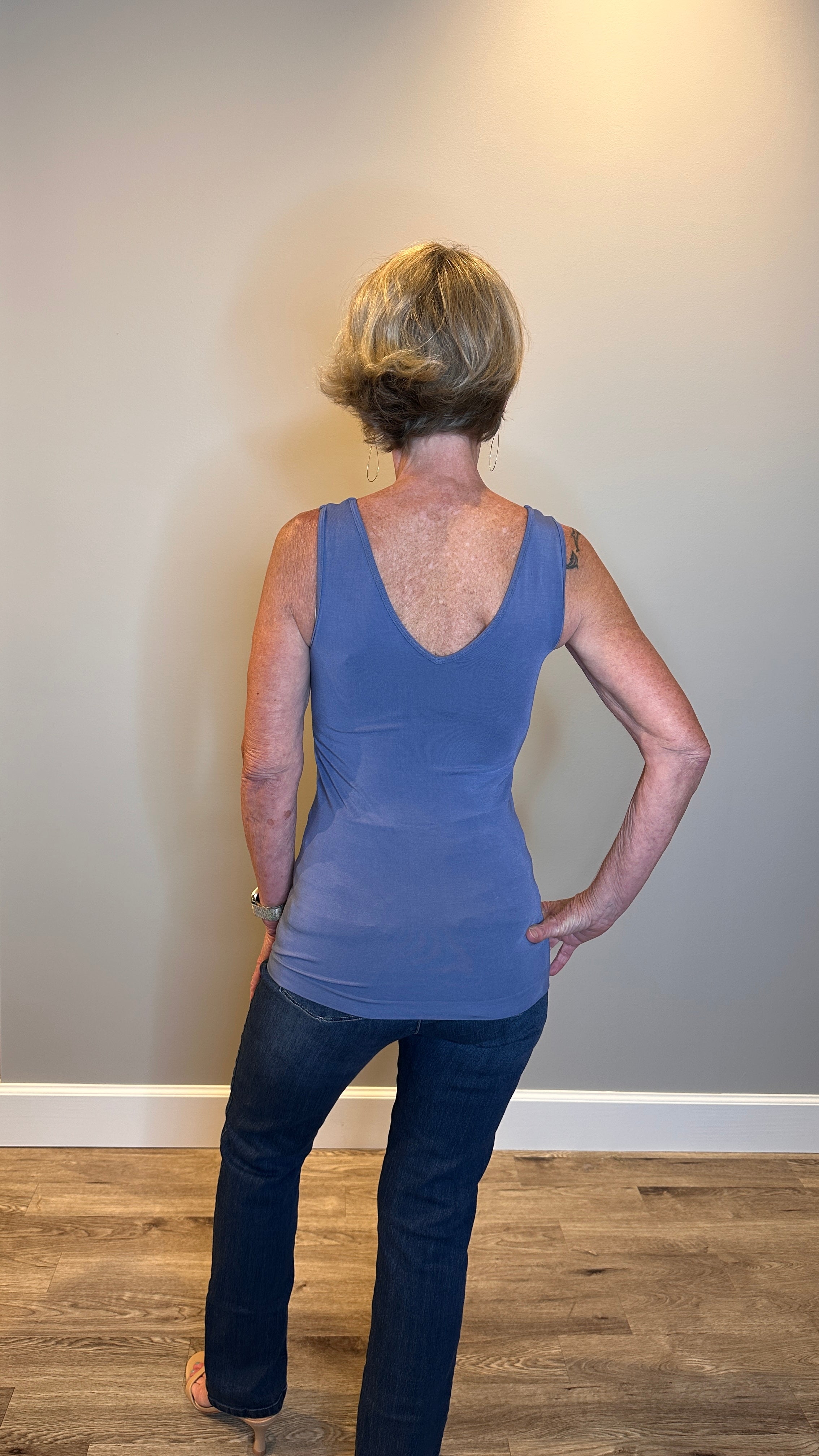 Our Reversible Tank offers effortless styling versatility with a V-neck on one side and a scoop neck on the other, giving you two looks for one. Made from ultra-soft, stretchy fabric that's gentle on your skin and quick drying for all-dry comfort, it's the perfect base layer for any outfit, in any season. You will always have more than one color! Denim Blue shown on model.